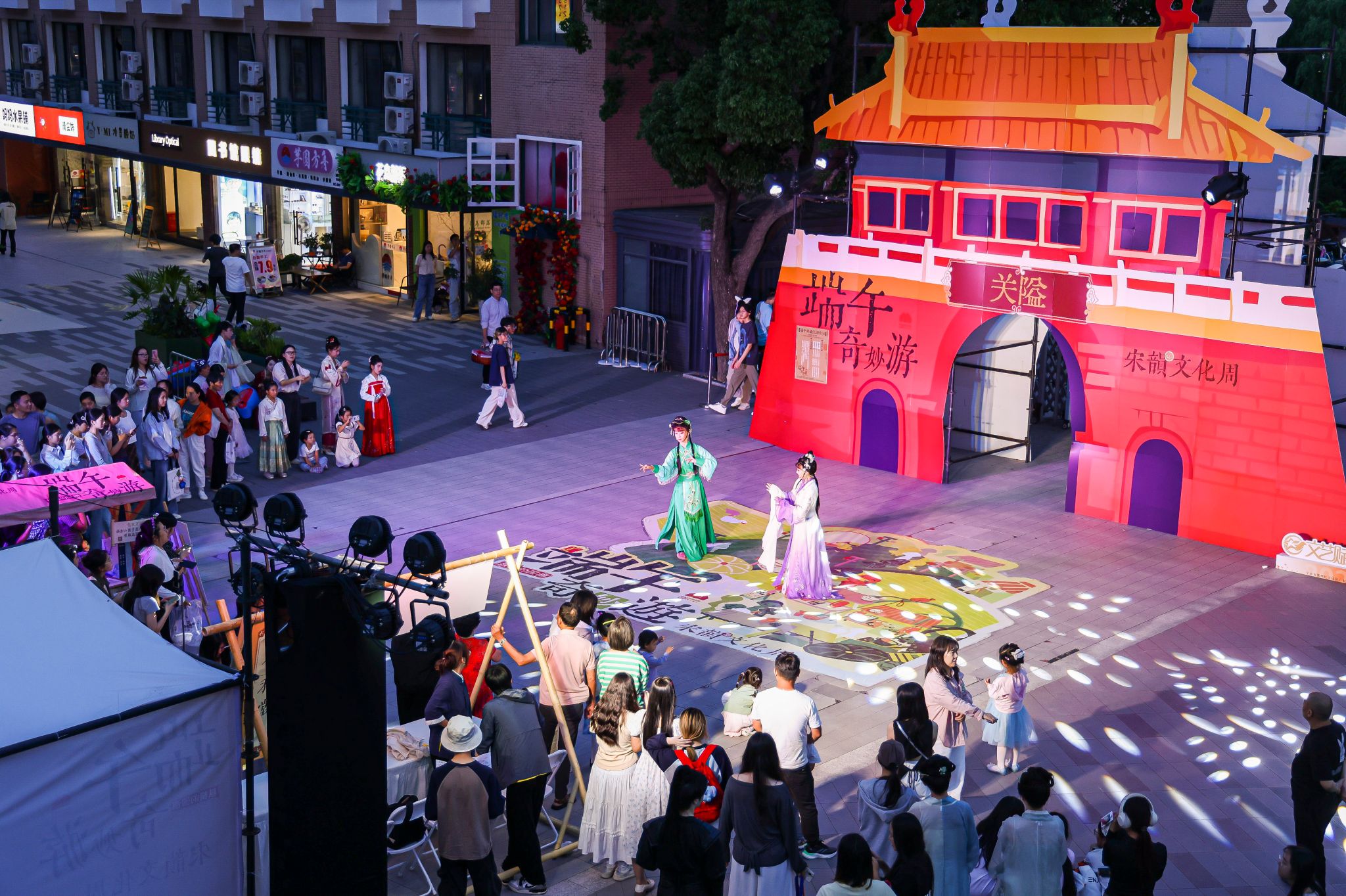 身着精美宋制华服的NPC穿梭于人群,引领参与者沉浸于剧情任务与端午趣味游戏中,上演了一场实景“剧本杀”。集章打卡点人头攒动,“穿越”体验让厚重的历史变得鲜活可触。