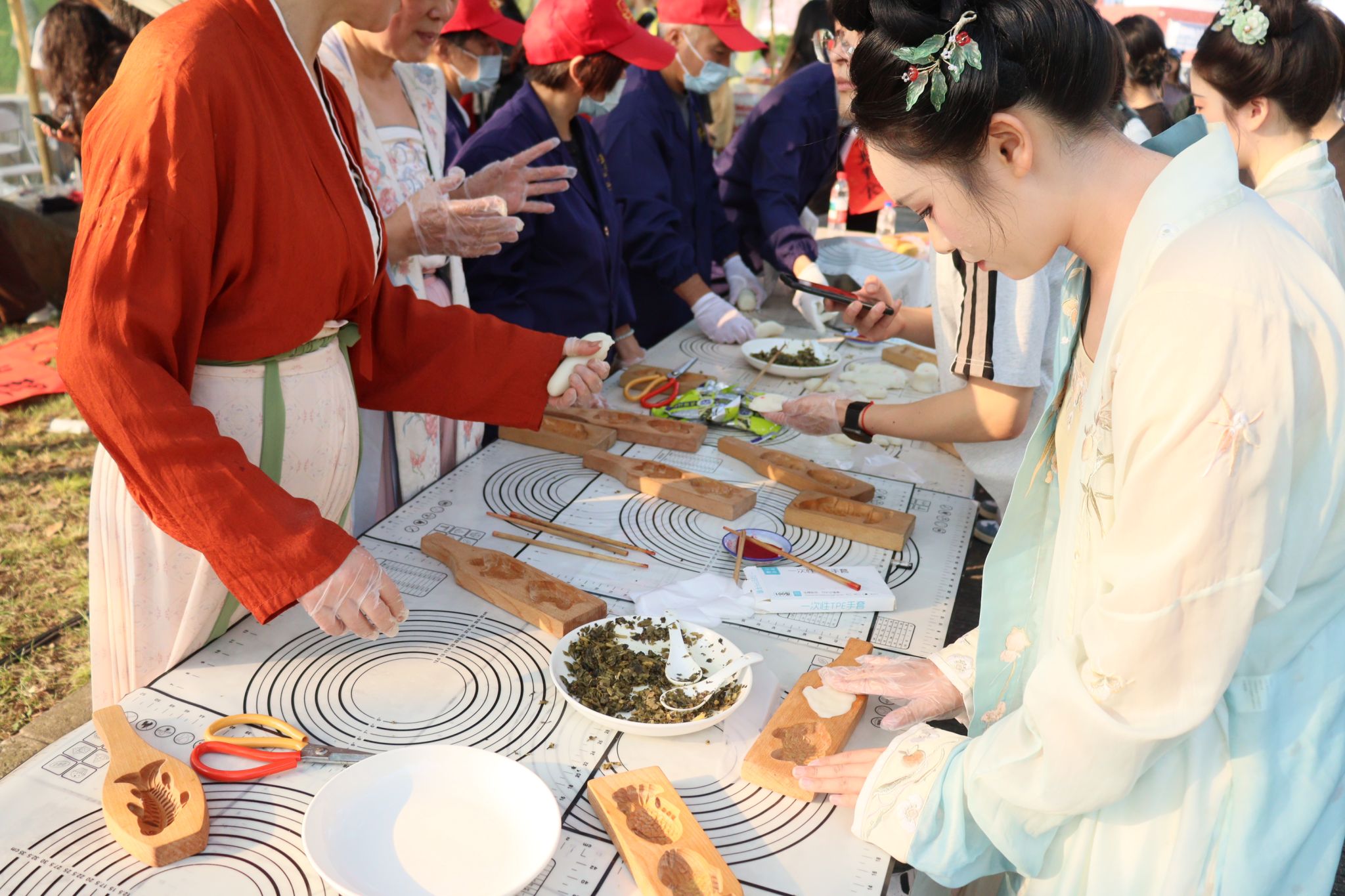 特邀的十余位非遗传承人成为当之无愧的“顶流”,包粽子、搡年糕、裹汤圆的烟火气,还有鄞州区文广旅体局带来的“鄞州十碗”特色美食,清香软糯的乌叶黑米糕、Q弹爽口的家乡灰汁团、绵软清甜的大嵩米馒头等地道鄞州风味。彩线刺绣、竹编、船模、剪纸、彩灯扎制的巧夺天工传统技艺在市集上与年轻审美激情碰撞,绽放出璀璨的“国潮”火花。
