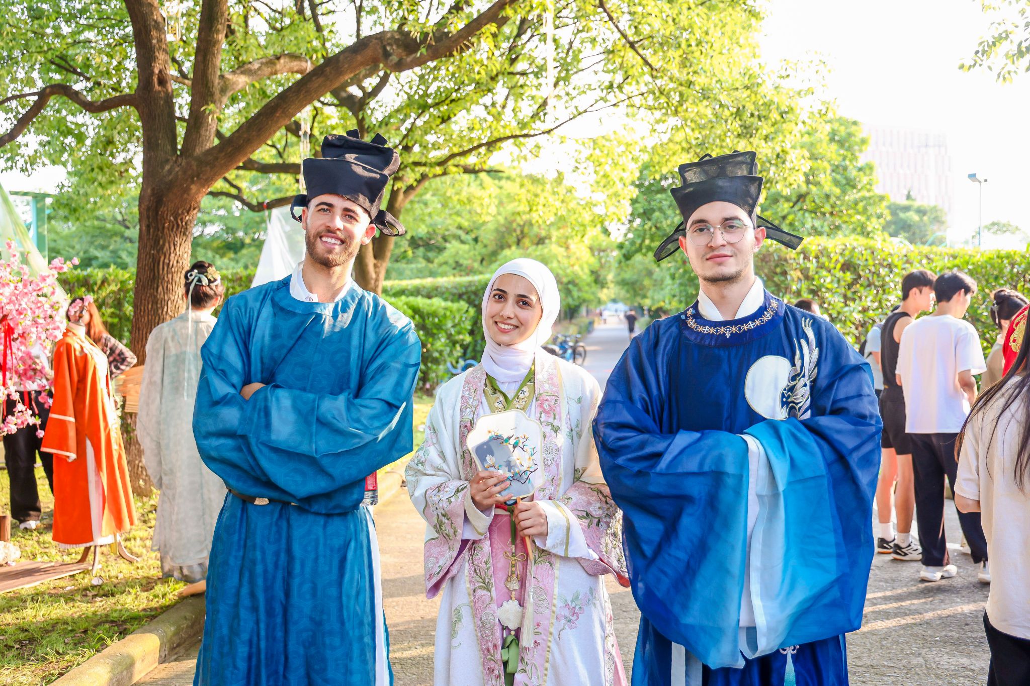 现场吸引了不少师生热情参与,其中不乏国际留学生,他们许多穿着汉服,对中国传统文化表现出了浓厚的兴趣。参与活动的留学生表示,节目和集市都非常有趣,对于他们了解中国的文化有很大帮助。