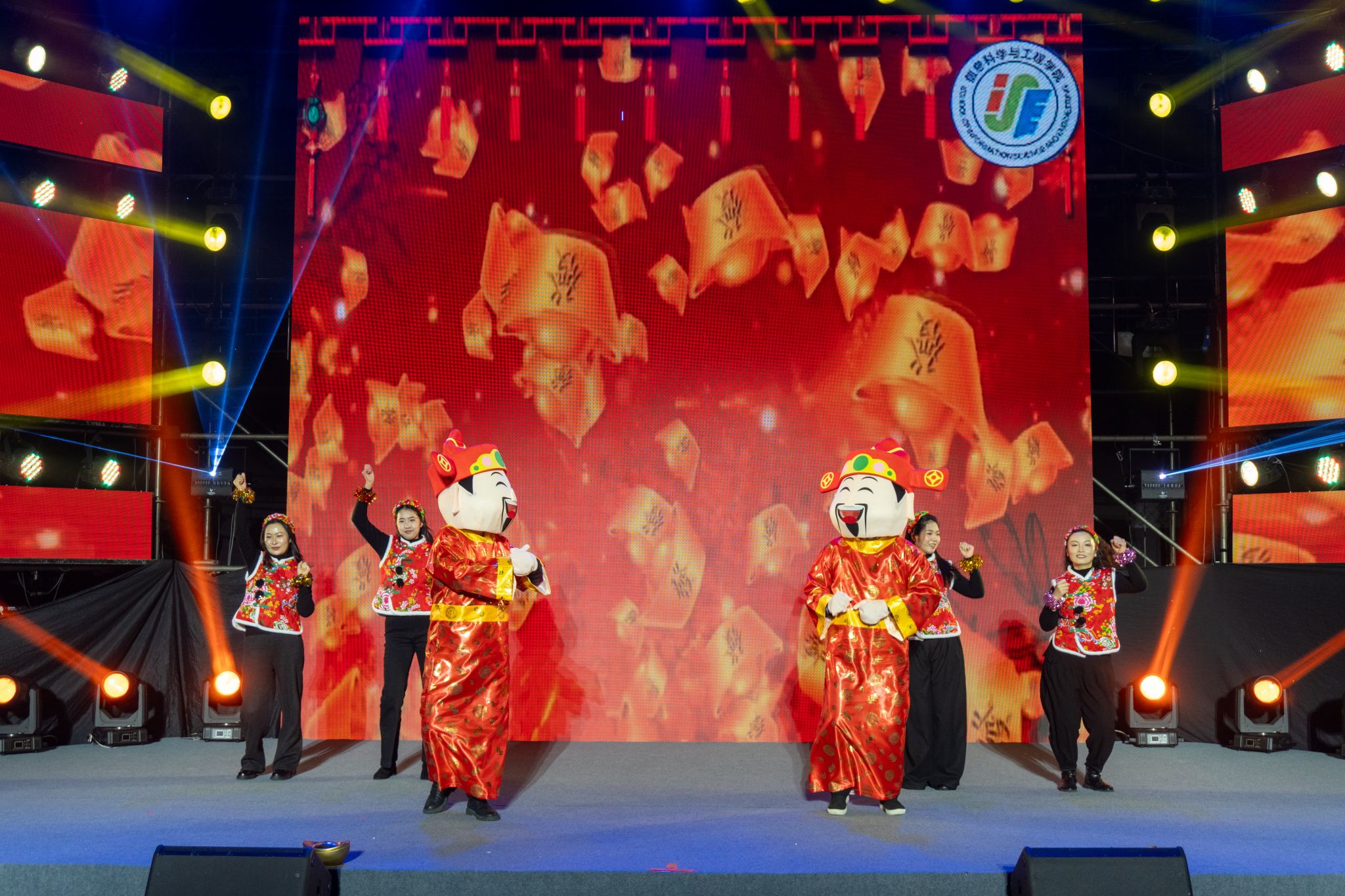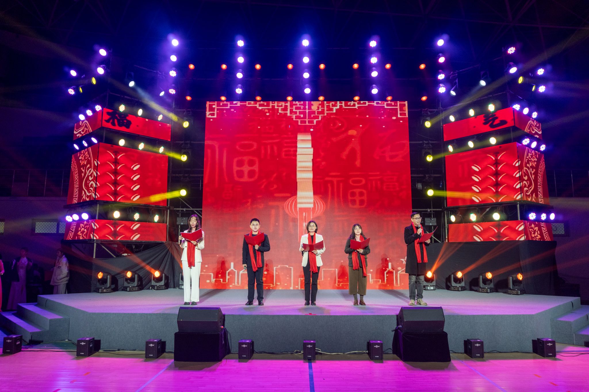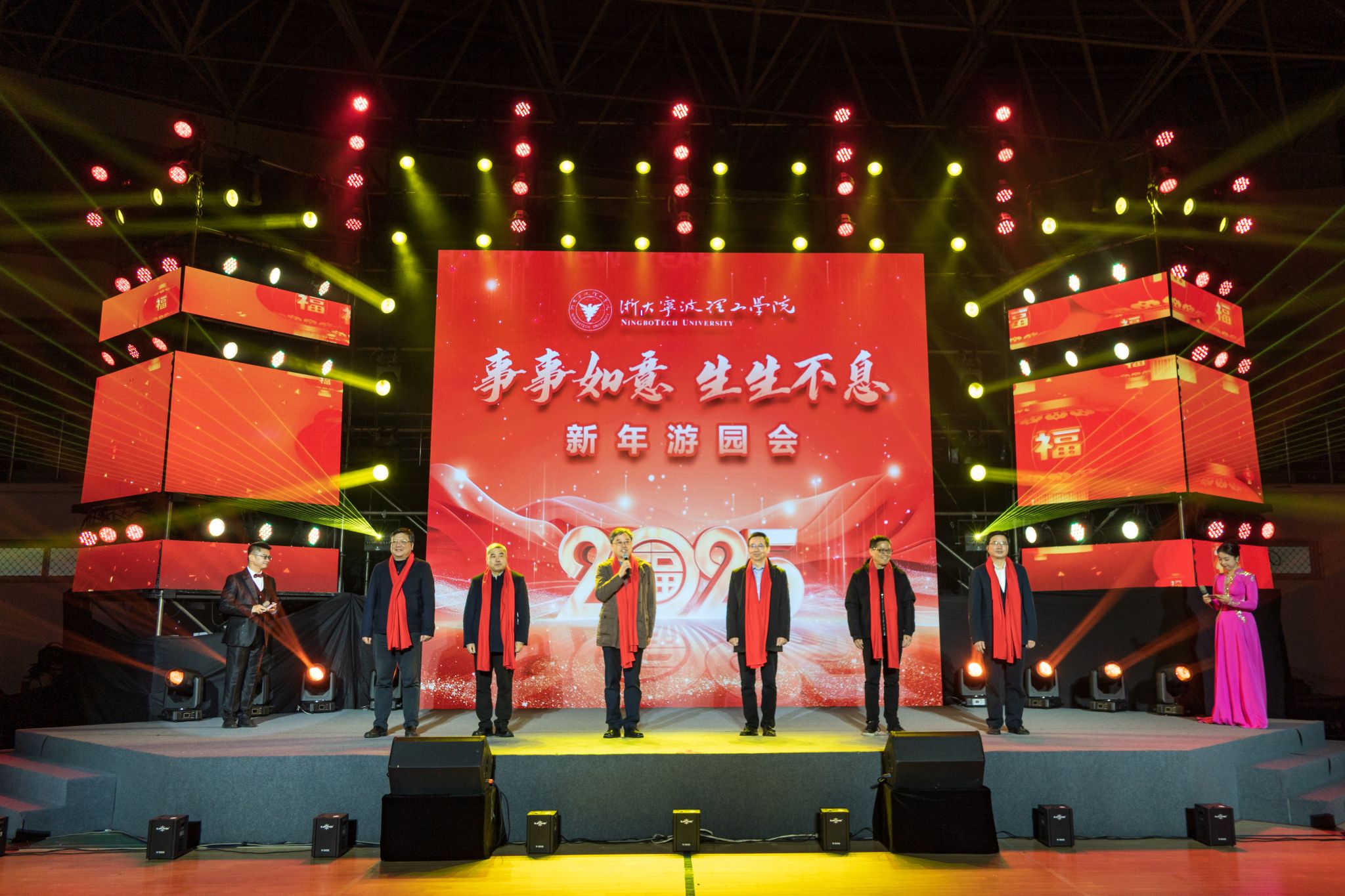在器乐团《喜洋洋》与《金蛇狂舞》的演奏中,游园会拉开帷幕。歌曲联唱《粉红色的回忆》《流星雨》《沧海一声笑》唤醒青春的记忆与梦想的追逐,旋律中洋溢的浪漫与豪情,展现青春的多彩与不羁;朗诵《每当钟声响起》用深情的诉说鼓舞大家新年再次启航;《新贵妃醉酒》《独家记忆》《月儿湾》等歌曲带来了不同的听觉体验与情感共鸣。最后,由信息工会表演群舞《恭喜发财》,舞台上,《恭喜发财》和《最炫民族风》的旋律先后响起,喜人的“花马甲”和“财神”在轻快的音乐中舞动,将满满的祝福送给每一位教职工。