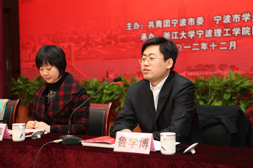 团中央学校部大学处鲁学博副处长代表团中央就贯彻党的十八大精神,继续推进青年马克思主义者培养工程的做出了最新的部署和传达了最新的精神。他在对宁波“青马工程”具体实施工作做进一步了解的基础上下,对我市的工作给予了高度评价和总结,同时也就宁波现今“青马工程”的实施提出了相关意见以及建议。