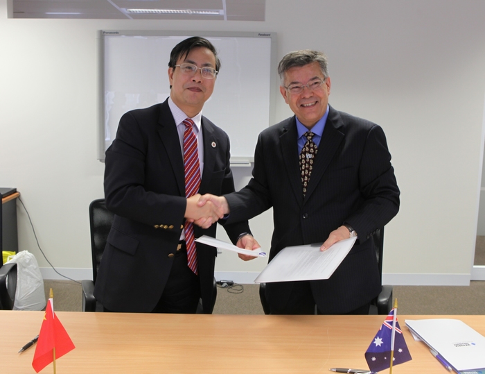 当日上午,在位于墨尔本市中心的维多利亚大学国际发展中心,浙江大学宁波理工学院院长金伟良教授和维多利亚大学执行校长Duncan Bentley教授代表双方在VU备忘录文本上签字。