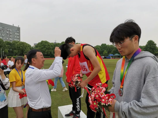 “作为一名体育教师,我深感体育教育是一项常做常新、永无止境的工作,唯有不断学习,才能保持前进。同学们能在体育场上赛出水平、赛出风采,是我最骄傲的事情;同学们在比赛中能够屡次突破自我,突破学校记录,让我感到十分欣慰和感动。我也将在今后的教学工作中严格要求自己,秉承“明德弘毅 开物启新”的校训和永不言败的竞技精神,继续带领学校田径队展现青春风采、取得优异成绩!”