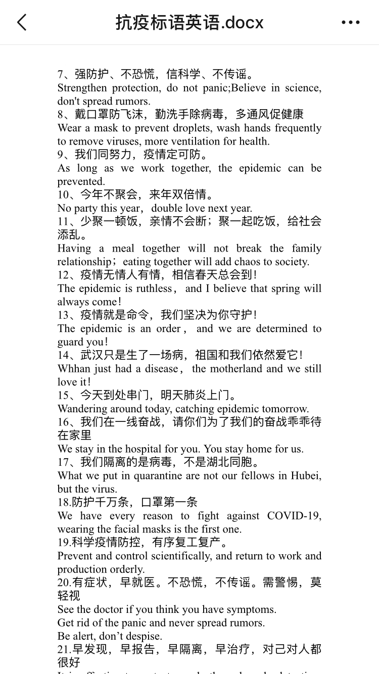 防疫标语翻译
