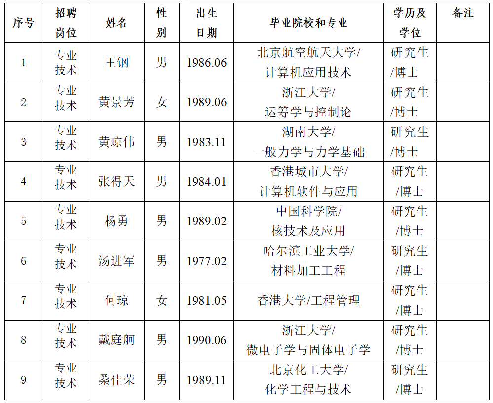 按照《宁波市事业单位公开招聘工作人员实施办法》和2018年浙江大学宁波理工学院公开招聘高层次人才(教师)公告(2018年3月12日)规定的程序,浙江大学宁波理工学院公开招聘工作通过公开报名、面试、体检和考核已进入择优聘用程序。根据面试、考核、体检结果,在合格人员中,经浙江大学宁波理工学院领导班子集体研究择优确定下列拟聘用人员,现公示名单如下: