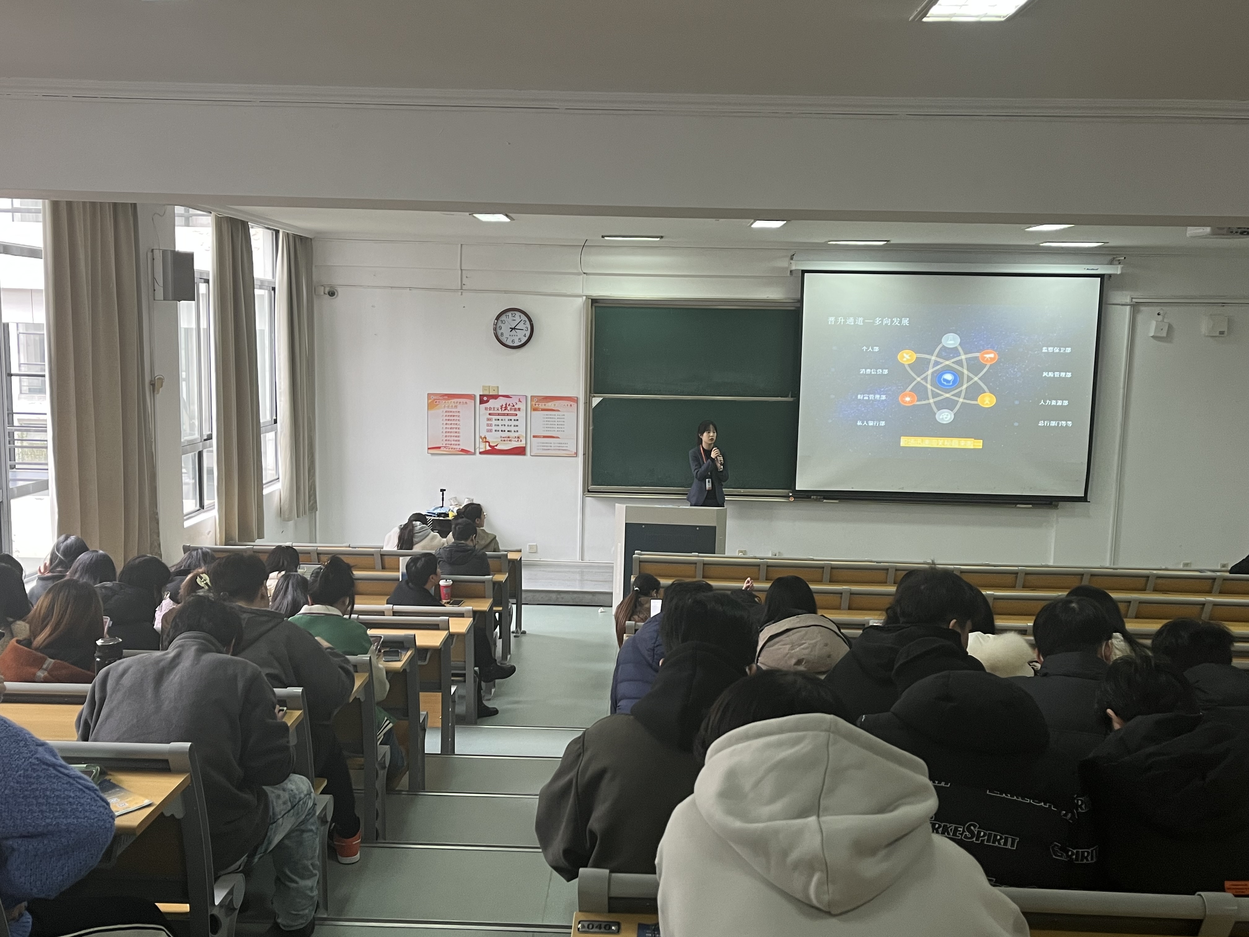 随后,各企业依次进行宣讲介绍,他们分别企业市场规模、企业主营业务、招聘岗位、薪资待遇等方面进行了介绍。