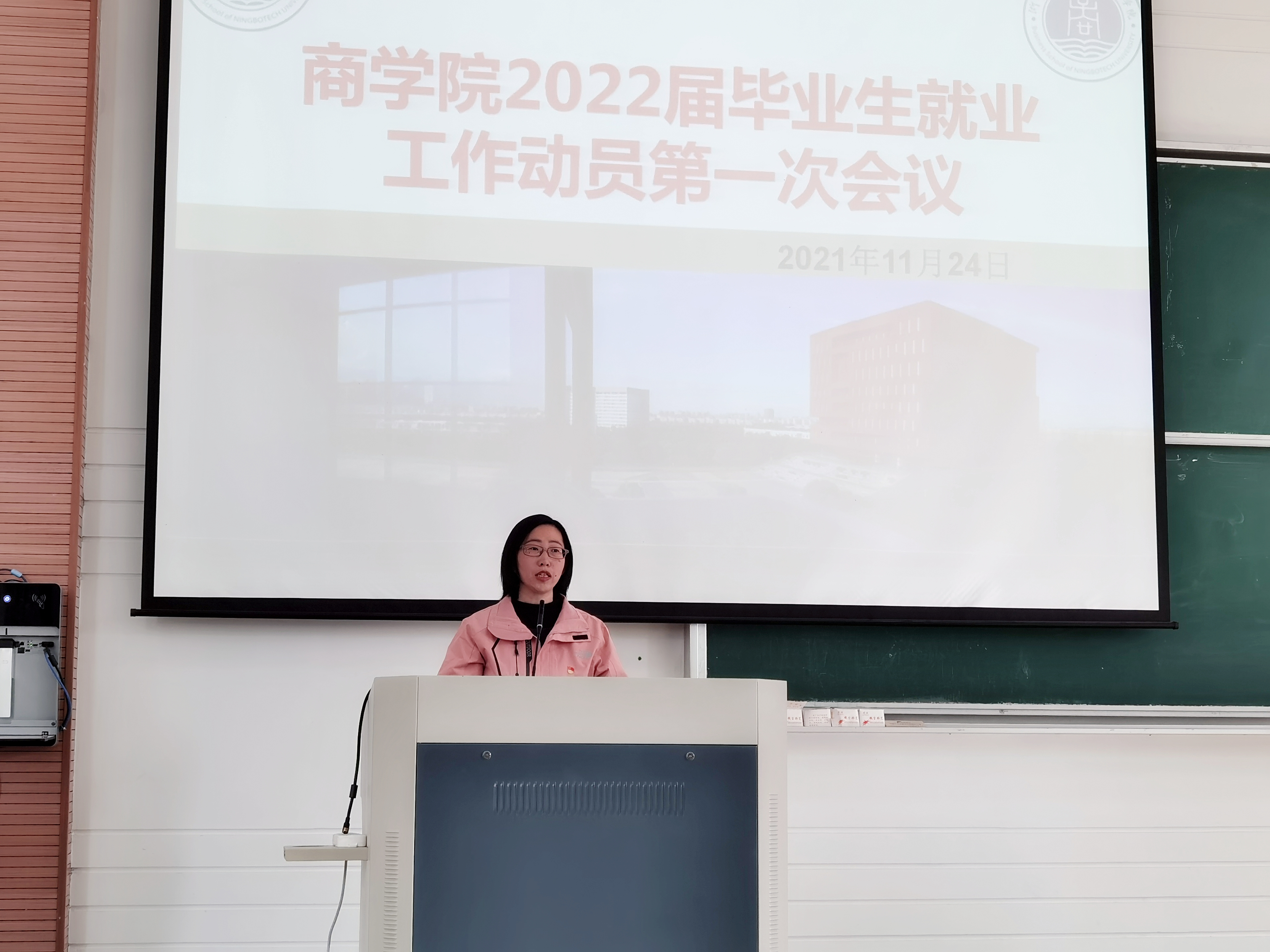 学院就业辅导员赵昌志老师在动员大会上简要通报了2021届毕业生就业基本情况,展示了就业三方协议网上操作流程,对就业信息获取途径、不同就业类别及毕业生档案转接等信息做了详细介绍。