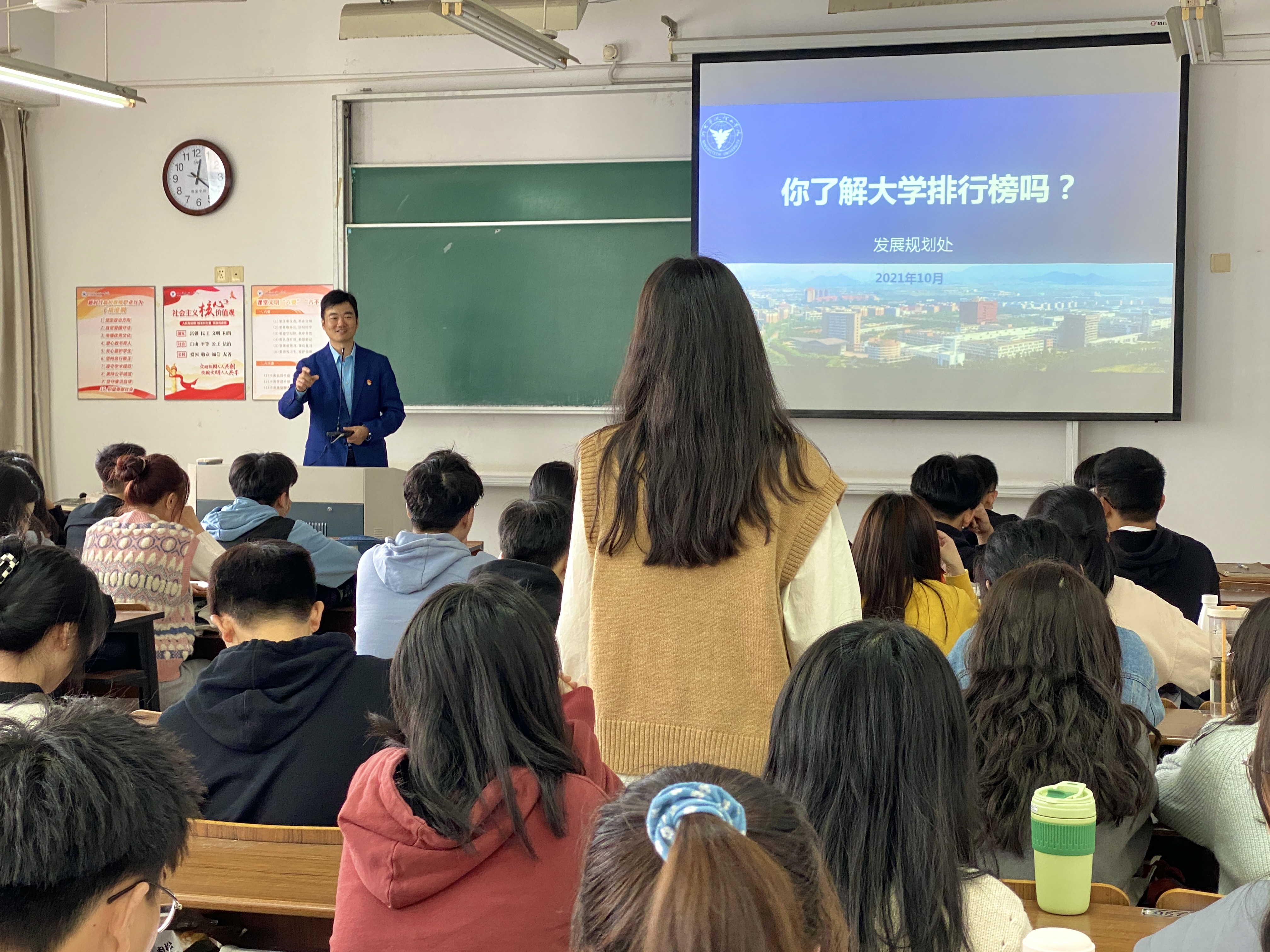 张国昌首先向同学们介绍了教科战略研究院的机构构成和工作内容,接着张老师从大学的三大职能切入,向同学们介绍了大学排行榜发展历史、排名由来,并详细介绍软科世界大学学术排名(ARWU)、THE世界大学排名、QS世界大学排名、U.S.News世界大学排名四大权威大学排名。张老师和同学们介绍了目前我校排名情况,呼吁同学们可以从学科竞赛等方面助力学校排名提升,指导同学们以后在研究生考试的报名中,关注填报学院的“双一流”建设情况。