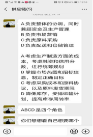 我认为这个比赛充满趣味性也充满挑战性,我很享受比赛的过程,虽然有时会手忙脚乱,但看着我们的工厂逐渐增多,看到我们的资金逐渐积累,心中满满都是开心与自豪。通过这个比赛,我巩固了以前所学的书本理论知识,提前了解了供应链点相关知识,对物流专业学习充满信心。