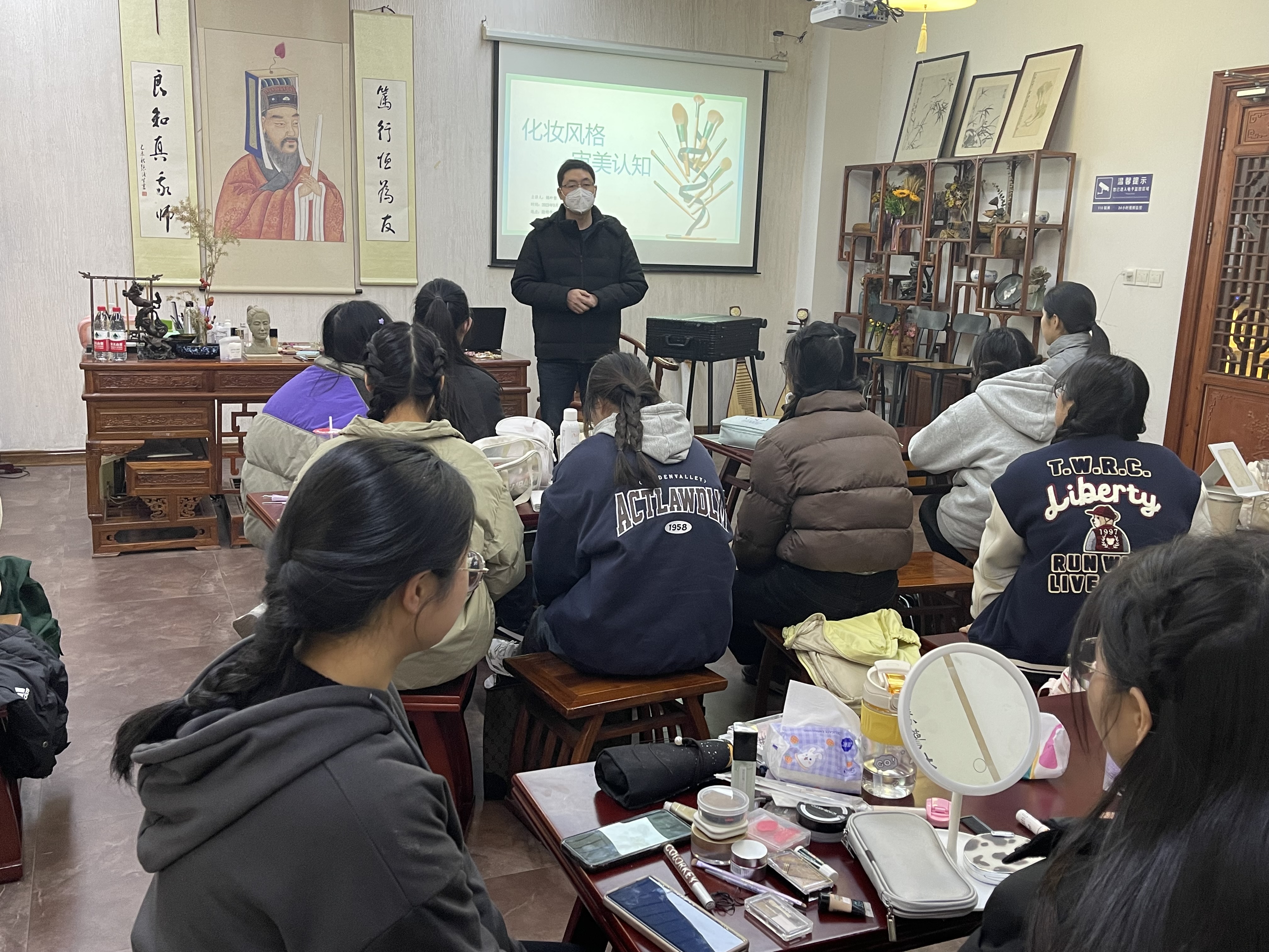 本期形象美学专班围绕“化妆风格审美认知”、“生活妆要点指导与体验”、“古典妆容认识与体验”、“古典盘发认识与体验”、“职业妆要点指导与体验”五个主题展开。希美造型工作室创始人、鲸宝集团合作化妆师姚叶青女士为26名博雅课堂学员带来了为期2天的形象美学讲座,通过理论讲解、现场演示、实践体验,指导各位学员求职面试妆、日常妆及整体形象设计等实用化妆技巧,提高大学生发现美、传承美、创造美、展现美的能力,加强学生对传统美、健康美的认知。