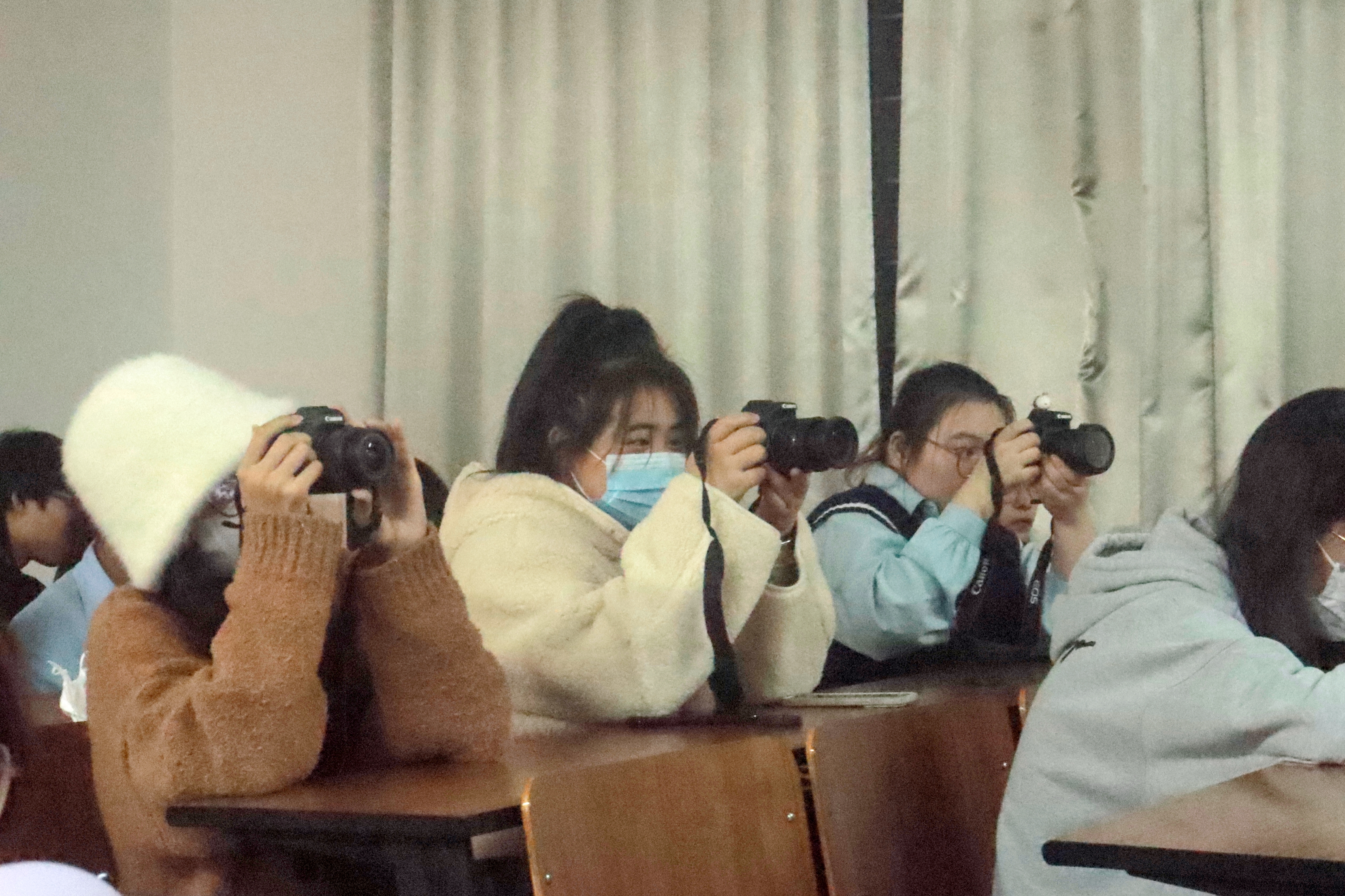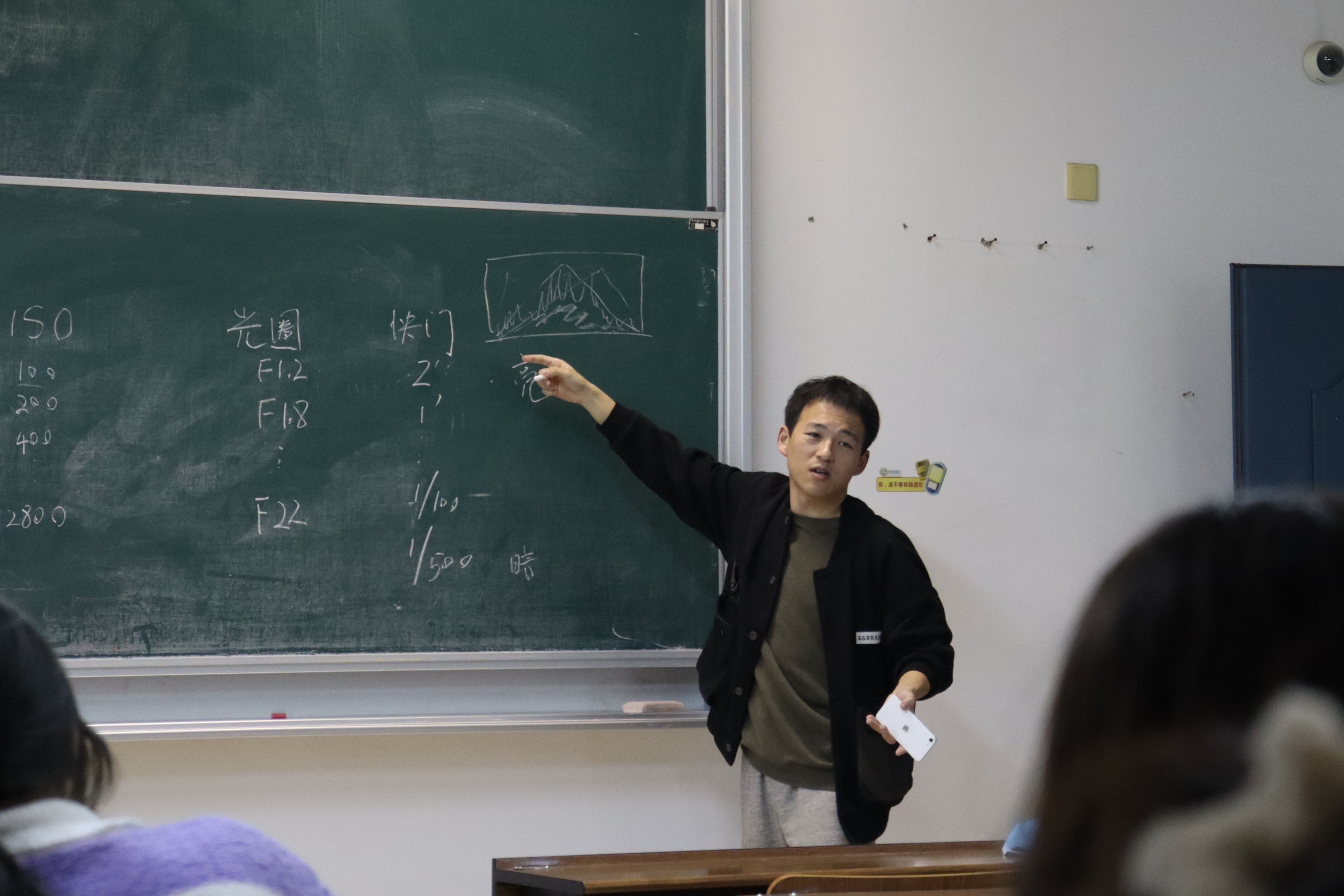 在第一次摄像摄影培训中,周金炯为同学们介绍了曝光三要素、井字构图等与摄影摄像相关的基础理论知识。另外,同学们分享了自己所拍摄的照片,周金炯对同学们所拍摄的照片也提出了一些小建议来提高照片的质量。