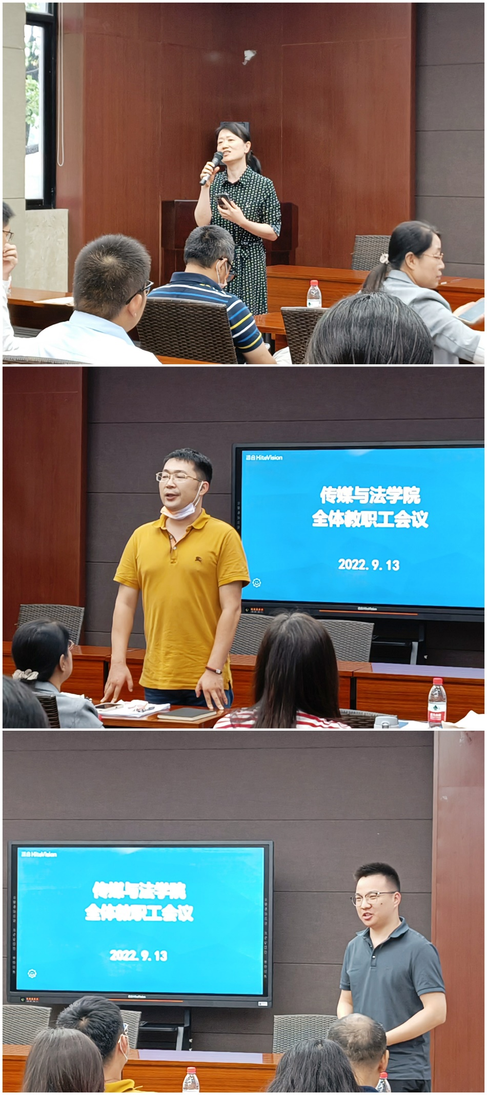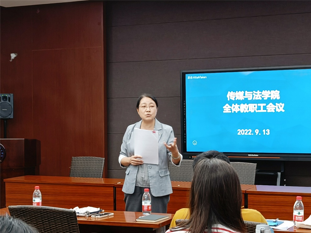为保障新学期各项工作顺利开展,传媒与法学院于9月13日中午在SC101召开了全体教职工会议。会议由党委副书记、纪委书记胡鹿鸣主持,全体教职工参加。