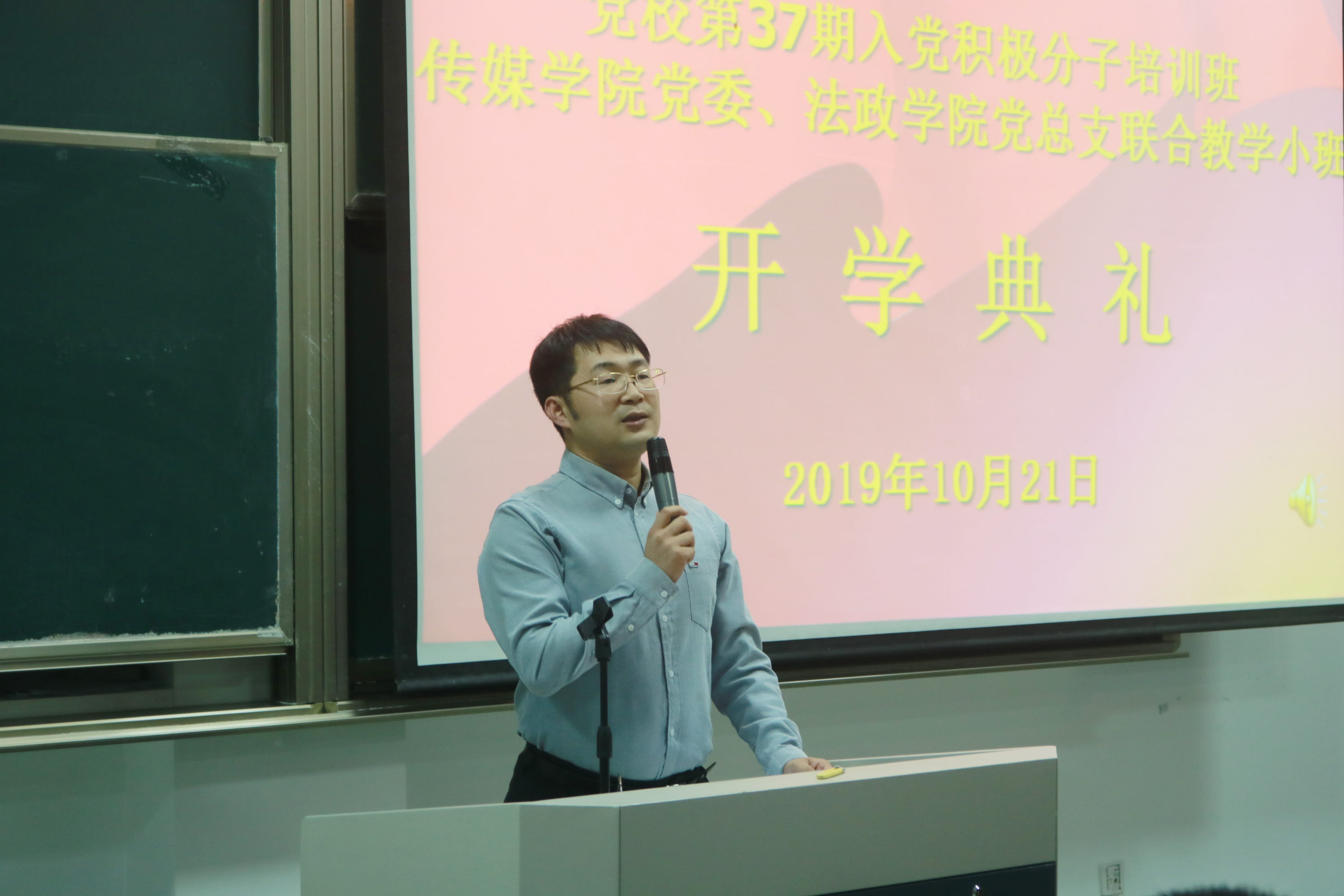 10月21日晚,党校第37期入党积极分子培训班传媒学院党委、法政学院党总支联合教学小班开学典礼暨党校第一讲在SF106教室举行。法政学院党总支书记吴春、传媒学院党委副书记胡鹿鸣、党校班导师曲昊杨、各学生党支部的邬旭东、董亚钊、丁六申、高雅姝、李倩倩等老师出席典礼,来自传媒、法政学院的70名党校学员参加开学典礼并进行党校第一讲学习。