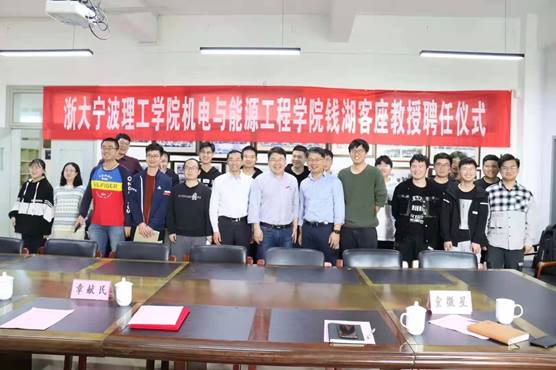 4月2日下午,机电与能源工程学院在NA408会议室举行赵佳飞教授钱湖客座教授聘任仪式。副校长章献民致欢迎词,为赵佳飞教授颁发聘任证书并佩戴校徽,人事处副处长南月余介绍赵佳飞教授的基本情况,学院党委书记童微星主持聘任仪式。