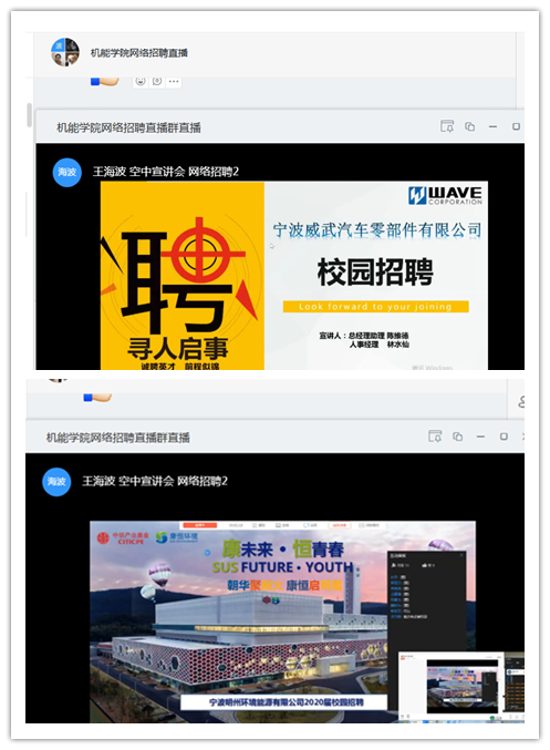 为继续做好学院毕业生就业服务工作,积极搭建用人单位招聘平台,增加毕业生求职氛围,机能学院于4月7日下午举办了第二期线上直播招聘宣讲会。本次邀请了宁波明州环境能源有限公司和宁波威武汽车零部件有限公司两家单位客座直播间,分别向毕业生介绍公司的概况、岗位需求、福利待遇和发展规划等。接着,学院就业辅导员王海波向毕业生讲解就业协议书的规范签约和注意事项。