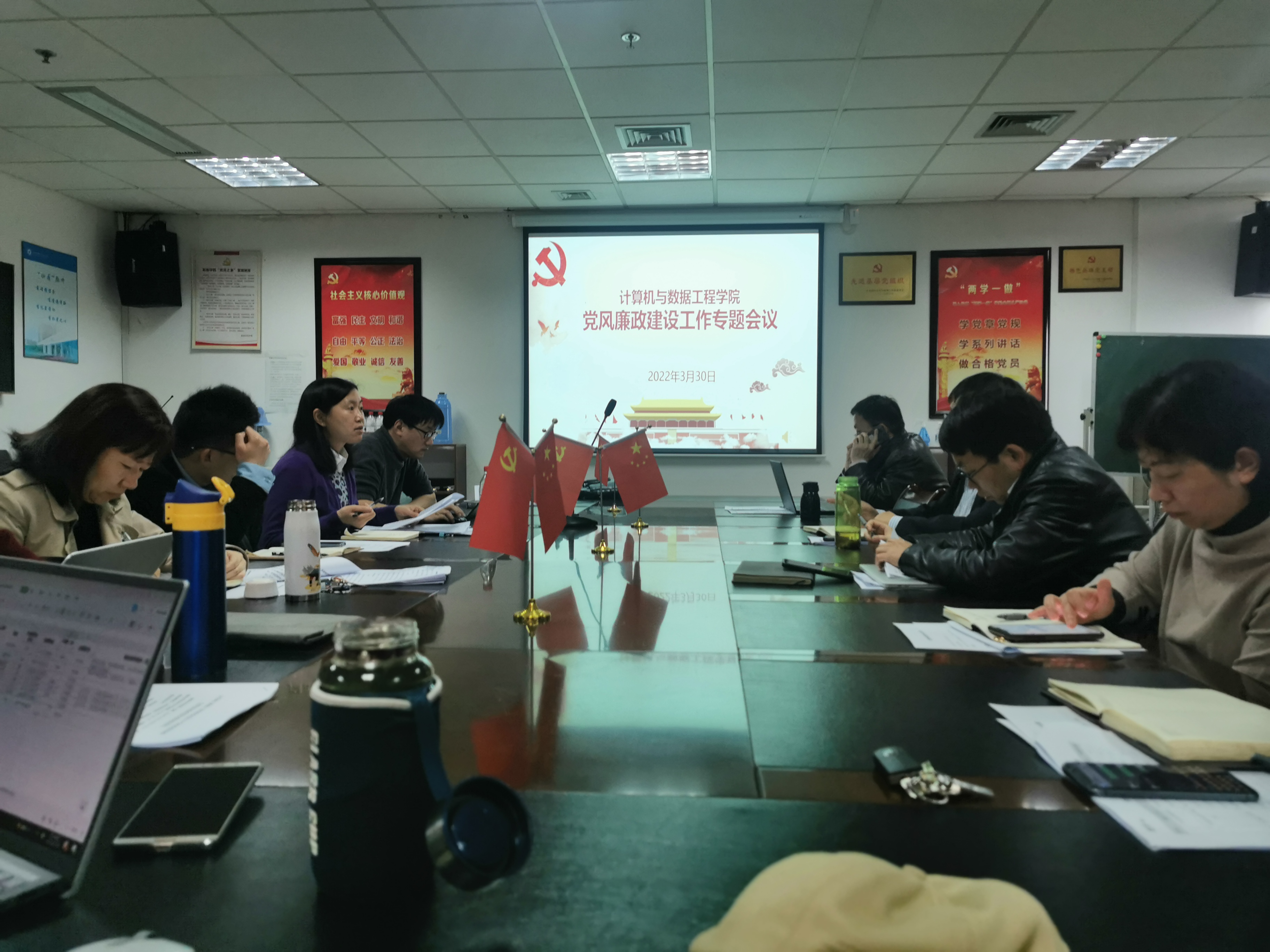 为进一步加强学院党风廉政建设,充分发挥党建引领作用,3月30日上午,数据学院党委在石麟602会议室组织召开2022年学院党风廉政建设专题分析会。会议邀请学校纪检监察室副主任周丽娟做专题报告,学院党委委员、纪委委员,各支部书记参加会议,会议由党委书记于欣主持。