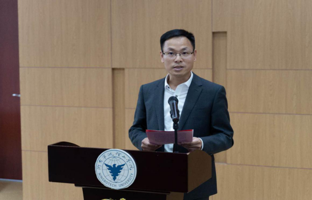 签约仪式上,庞超逸教授简要介绍数据学院概况,并承诺学院一定会公开、公正、公平地做好“宝兴智慧奖学金”评定工作。毛勇副主任就此次合作发表寄语,他希望校企双方进一步深化产教融合,搭建更多高水平产教融合平台,全力为鄞州区乃至宁波市数字化转型升级培养更多高水平创新性应用型人才。