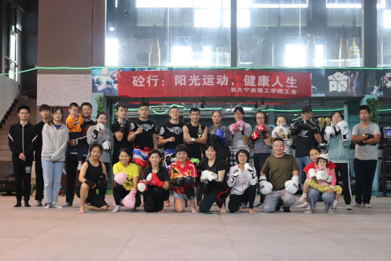 活动在宁波市教育工会在平台上发布,收到了来自多个兄弟单位的踊跃报名。活动当天,我们邀请到有着“世界功夫之王”之称的方飞达教练和泰国职业运动员那缇教练进行现场教学。内容包括自由搏击基本教学、拳-腿-膝组合和对抗训练及学员间的交流互动等环节。
